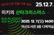 (포탈뉴스통신) 김포시 마산도서관은 다가오는 크리스마스를 기념하여, 가족 단위로 관람할 수 있는 마술 공연 프로그램 ‘미키의 산타크리스마스’를 진행한다. ‘미키의 산타크리스마스’는 시선을 사로잡는 다양한 마술과 퍼포먼스를 통해, 관객에게 설렘과 행복, 즐거움과 감동을 선사하는 관객 소통형 공연이다. 또한 공중부양 포토존을 도서관 내에 설치해 특별한 추억을 만들 수 있도록 했다. 이번 프로그램은 김포시민 100명을 대상으로 12월 7일 일요일 14시부터 마산도서관 3층 다목적실에서 한 시간가량 진행된다. 11월 14일 금요일 오전 10시부터 김포시 마산도서관 홈페이지 ‘문화행사 신청(모집/행사 부분)’ 코너에서 온라인으로 신청할 수 있다. [뉴스출처 : 경기도 김포시]