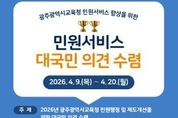 (포탈뉴스통신) 광주시교육청은 민원서비스 품질 향상을 위해 오는 9~20일 국민권익위원회 온라인 정책참여 플랫폼 ‘국민생각함’과 ‘시교육청 누리집’을 통해 대국민 의견을 수렴한다. 이번 의견 수렴은 국민의 다양한 목소리를 민원행정과 제도개선에 반영해 광주교육 민원서비스 만족도를 높이기 위해 추진됐다. 의견 수렴 내용은 ▲민원서비스 향상을 위한 제도 개선 ▲민원실 편의시설 및 환경 개선 ▲기타 민원서비스 이용 시 불편사항 및 개선 아이디어 등이다. 지난해 실시한 ‘2025년 민원서비스 개선 대국민 의견수렴’에는 595명의 국민이 참여해 다양한 의견을 제시했다. 시교육청은 올해도 다양한 의견을 듣기 위해 참여자 중 20명을 추첨해 모바일 음료 교환권을 증정하는 이벤트를 진행한다. 박준수 행정국장은 “시민 눈높이에 맞는 민원서비스를 제공하기 위해서는 현장 의견을 듣고 정책에 반영하는 것이 무엇보다 중요하다”며 “수요자 중심의 민원행정과 제도개선을 통해 신뢰받는 교육행정이 실현되도록 최선을 다하겠다”고 말했다. [뉴스출처 : 광주광역시교육청]