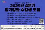 (포탈뉴스통신) 서울 성동구가 2025년 4분기 평생학습관 정기강좌 수강생을 오는 9월 29일(월) 오전 9시부터 성동구청 누리집(홈페이지) 신속예약에서 선착순으로 모집한다. 이번 4분기 정기강좌는 대학연계, 디지털, 인문교양, 문화예술, 생활건강 등 구민 삶의 질을 높일 다양한 프로그램으로 구성됐다. 특히, 장애인 인식개선을 주제로 한 특강을 새롭게 마련해 도슨트와 함께 고난을 이겨낸 예술가들을 조명하고, 전문 영화인과 함께 타인의 시선과 감정을 이해하며 공감하는 특별한 시간을 제공한다. 이와 함께 AI와 스마트폰, 주식인사이트, 시사영어, 노르딕워킹 등 실생활에 도움이 되는 실전 강의부터 인문고전, 클래식, 유네스코 세계유산 여행, 글쓰기 등 풍성한 예술·문화 강좌까지 구민들의 다양한 학습 욕구를 충족시킬 예정이다. 성동구 평생학습관은 분기별로 정기강좌를 운영하며, 매번 높은 관심과 참여를 이끌고 있다. 실제로 지난 3분기 정기강좌에는 14개 강좌에 626명의 수강생이 참여해 평생학습에 대한 뜨거운 열기를 확인할 수 있었다. 정원오 성동구청장은 “지적 성장과 자기계발, 공감 능력까지 다양한 배움