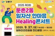 (포탈뉴스통신) 강동구 둔촌2동은 오는 27일 일자산근린공원 잔디광장에서 ‘제3회 둔촌2동 일자산 한마음 Healing 콘서트’를 개최한다고 밝혔다. 올해로 세 번째를 맞는 이번 콘서트는 둔촌2동 주민자치회가 주최하고 동주민센터가 지원하며, 다양한 먹거리, 체험 프로그램, 주민참여 버스킹, 아트 공연, 초대가수 무대 등으로 꾸며져 지난해보다 한층 풍성한 주민참여형 지역축제로 마련됐다. 이날 콘서트는 오후 2시 둔촌2동 자치회관 프로그램 공연과 주민 가수 구한나 씨의 식전 무대로 시작한다. 이어 오후 3시 개막식을 열고, 주민참여 버스킹, 버블·벌룬 아트 공연, 관내 중학교 동아리 공연, 초대 가수 무대 등이 이어진다. 특히 폐막 무대에서는 가수 김소진·김명진·홍원빈이 함께하는 공연이 펼쳐져 한층 수준 높은 문화공연을 선보일 예정이다. 또한 다양한 먹거리를 판매하고 가훈 써주기, 당찬 슈팅존, 나만의 당찬 텀블러 만들기, 힐링 스티커 붙이기 등 다양한 체험 프로그램이 무료로 진행된다. 아울러 스티커 붙이기에 참여한 관람객에게는 추첨권을 배부해 TV, 자전거, 무선 이어폰 등 푸짐한 경품을 증정할 예정