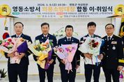 (포탈뉴스통신) 영동소방서는 9일 영동읍 부용리 소재 여성회관에서 영동의용소방대장 합동 이·취임식 행사를 개최했다. 이번 행사는 전임 의용소방대장의 노고를 치하하고, 신임 의용소방대장의 앞날을 축복하고 격려하기 위해 의용소방대원 등 소방가족 150여 명이 참석한 가운데 진행됐다. 이날 이임하는 서제원(63, 남)황간남성의용소방대장, 송일남(52, 남)용산의용소방대장, 정재만(56, 남)심천의용소방대장은 그동안 지역사회 안전에 이바지한 공로를 인정받아 공로패를 전수 받았다. 또한 새로 취임하는 민창기(55, 남)영동남성의용소방대장, 손기진(60, 남)황간남성의용소방대장, 김광현(58, 남)용산의용소방대장, 이내응(56, 남)심천의용소방대장은 대원들 사이에 두터운 신뢰와 함께 지도력과 통솔력을 인정받아 이번 신임 대장에 취임하게 됐다. 한편 영동소방서 의용소방대는 13개대 321명으로 구성되어 있으며, 화재 진압은 물론 전문강사 양성을 통한 주민 안전 교육, 주택용소방시설 설치 참여, 불우이웃 성금 기부 등 지역 사회 안전문화를 선도하고 있다. 이도형 서장은 “바쁜 생업에도 화재를 비롯한