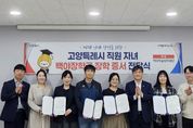 (포탈뉴스통신) 고양특례시는 지난 22일 ‘백야학술장학재단 장학금 전달식’을 개최해, 고양시 직원의 대학생 자녀 중 학업성적이 우수하고 타의 모범이 되는 인재 4명에게 장학증서와 장학금을 전달했다. 이번 장학금 전달식은 백야학술장학재단의 장학생 추천 요청에 따라 진행됐다. 시는 2026년 현재 대학에 재학 중인 직원의 자녀 중 품행이 단정하고 성적이 우수한 4명을 선발해 재단에 추천했으며, 최종 선발된 학생들에게 1인당 100만 원의 장학금과 장학증서를 전달했다. 전달식에는 자녀를 대신해 참석한 부모들이 함께했으며 “자녀들이 장학금 수여를 계기로 학업에 더욱 매진해 사회 발전에 기여하는 인재로 성장하길 바란다”며 감사의 뜻을 밝혔다. 한편, 백야학술장학재단(이사장 김병희)은 2001년부터 장학사업을 펼쳐온 공익법인으로 모범적인 학업 태도로 귀감이 되는 학생에게 매년 장학금을 지급하고 있다. 특히, 2003년부터 고양시청 소속 직원 자녀에게 지속적으로 장학금을 후원하며 지역사회 인재 양성에 기여하고 있다. 고양시 관계자는 “어려운 경제 여건에서도 기업 이윤의 사회 환원이라는 가치를 실천하