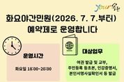 (포탈뉴스통신) 옥천군은 화요야간민원실 운영의 효율성을 높이고 군민의 불필요한 대기와 재방문을 줄이기 위해 오는 7월 7일부터 예약제로 전환해 운영한다고 밝혔다. 이번 예약제 전환은 민원실 야간 운영에 수반되는 조명‧냉난방 등 에너지 사용을 필요한 만큼만 합리적으로 운영하여 에너지 절약과 탄소 배출 저감에도 기여할 것으로 기대된다. 그동안 야간 민원 수요가 일정하지 않아, 민원 대기가 없는 시간에도 청사 내 조명과 냉난방이 가동되는 등 불필요한 에너지 사용이 발생해 왔다. 이에 군은 사전 예약을 통해 방문 수요를 미리 파악하고 민원 대응을 준비함으로써, 담당 창구를 필요한 범위로 운영하는 등 야간 민원실 운영을 효율화하는 방향으로 제도를 개선했다. 예약 접수는 운영일 전날 오후 6시까지 가능하며, 전화를 통해 신청할 수 있다. 예약 시에는 성명, 연락처, 방문 희망 시간, 민원 내용 등을 제출해야 한다. 군 관계자는 “예약제 도입을 통해 행정력 낭비를 줄이고 민원 처리 효율을 높이는 한편, 야간 청사 에너지 사용 절감 등 생활 속 에너지 절약 실천을 군정 전반으로 확산해 나가겠다”고 말
