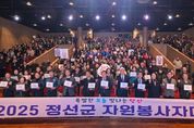 (포탈뉴스통신) 정선군은 12월 23일 정선문화예술회관 3층에서 한 해 동안 지역 곳곳에서 이웃사랑을 실천해 온 자원봉사자들을 격려하고 자원봉사 문화 확산을 도모하기 위해 ‘2025 정선군자원봉사자대회’를 개최했다. 이번 행사에 최승준 정선군수를 비롯해 전영기 정선군의장, 관계기관·단체장, 자원봉사자와 봉사단체 대표 및 회원 등 500여 명이 참석했다. 자원봉사자대회는 지역사회 곳곳에서 묵묵히 봉사활동을 이어온 자원봉사자들의 노고를 격려하고, 자원봉사 활동의 가치와 의미를 공유함으로써 지역 공동체의 결속력을 강화하기 위해 마련됐다. 행사는 자원봉사활동 영상 상영, 개회선언, 유공 자원봉사자 시상, 대회사 및 격려사 등으로 구성된 본행사가 진행됐으며, 2부 행사에서는 축하공연과 경품 추첨 등을 통해 참여자 간 화합의 시간을 가졌다. 특히 이날 행사에서는 개인 및 단체 등 총 35명이 자원봉사 유공자로 선정돼 표창을 받았다. 수상단체는 정선수난전문의용소방대, 사북읍자율방범대, 해병대정선군전우회, 정선군모범운전자회, 가족봉사단 화랑가족팀, 정선읍 자율방범대 등 6개 단체이며, 개인 수상자는 29명이다.