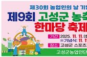 (포탈뉴스통신) 고성군은 11월 11일부터 12일까지 고성군스포츠타운 4구장에서 ‘제30회 농업인의 날 기념, 제9회 고성군 농축산물 한마당 축제’를 개최한다. 고성군농업인단체협의회가 주관하고 고성군이 후원하는 이번 행사는 농업인의 긍지와 자부심을 높이고, 지역 농축산물의 소비를 촉진하기 위해 마련됐다. 축제는 기념식과 축하공연, 농축산물 홍보 및 판매, 무료시식회, 전시·체험 행사, 귀농귀촌·청년농업인·고향사랑기부제 홍보 등으로 구성된다. 첫째 날인 11월 11일 오전 10시부터 농축산물 직거래장터와 전시행사가 열리며, 오전 10시 30분에는 여성농민회의 오카리나 연주와 퓨전국악 ‘화온’의 식전공연으로 축제의 막을 열고, 오전 11시에는 기념식이 진행된다. 기념식에서는 내빈소개, 개회선언, 국민의례, 유공자 시상(군수 2명, 의장 2명, NH농협고성군지부장 1명, 감사패 2명) 등이 이어지며, 기념사와 축사 후에는 ‘고성에는 고성쌀 강정’ 농업인의 날 축하 퍼포먼스가 진행될 예정이다. 오후에는 맥주 빨리마시기 이벤트를 시작으로 트로트가수 한아름, 윤이나, 서백의 무대와 생활개선회의 난