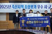 (포탈뉴스통신) 순천시는 2025년 전라남도 축산시책 종합평가에서 최우수상을 수상했다고 23일 밝혔다. 시는 가축분뇨의 적정 처리와 악취 저감, 축산 환경 개선을 중심으로 한 축산 시책을 시민과 함께 추진해 왔으며, 이러한 노력이 이번 평가에서 최우수상 수상으로 이어졌다. 특히 축산단체와 지역 주민이 함께 만들어 낸 성과를 지역사회와 나누기 위해 시상금 일부를 조곡동 취약계층 나눔 활동으로 실천했다. 조곡동 취약계층 10가구를 대상으로 따뜻한 겨울 나기를 돕기 위한 전기매트를 구입해 전달했다. 이번 나눔은 축산 정책 추진 성과를 지역사회와 공유하고, 상생의 가치를 실천하기 위해 마련됐다. 시 관계자는 “축산시책 평가 최우수상 수상은 현장 농가와 시민 모두의 협력으로 이뤄진 결과”라며, “앞으로도 환경과 주민, 농가가 함께 상생하는 축산 정책과 더불어 지역사회 나눔을 지속적으로 실천해 나가겠다”고 말했다. [뉴스출처 : 전라남도순천시]