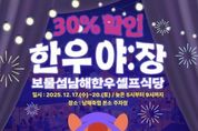 (포탈뉴스통신) 남해군은 연말을 맞아 오는 12월 17일부터 20일까지 4일간, 매일 오후 5시부터 9시까지 남해축협 본소 주차장에서 ‘한우야:장(보물섬남해한우 셀프식당)’을 운영한다고 밝혔다. 이번 행사는 얼마 전 군민과 상인들의 뜨거운 호응 속에 마무리된 ‘남해의 맛 – 화전야:장(花田夜:場)’의 열기를 이어받아 군민들에게 겨울밤, 야외 테이블에서 프리미엄 한우 코스를 즐길 수 있는 특별한 경험을 제공하기 위해 마련됐다. 행사 기간 동안 마트에서 100g당 17,000원~13,100원에 판매되는 1++, 1+ 등급 보물섬남해한우(등심, 안심 및 특수부위)를 30% 할인된 가격으로 현장에서 구워 먹을 수 있다. 한편, 예로부터 우리 민족은 겨울철에 쇠고기를 즐겨 먹었는데 음력 10월이면 숯불을 지핀 화로에 번철을 놓고 양념한 쇠고기와 여러 재료를 함께 구워 둘러앉아 나누던 풍속인 난로회(煖爐會)가 있었으며, '열하일기'를 집필한 연암 박지원은 “겨울철 눈 오는 날, 친구를 불러 고기를 구워 먹으니 신선이 사는 곳이 부럽지 않다”고 기록했다. [뉴스출처 : 경상남도남해군]