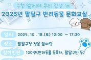 (포탈뉴스통신) 수원시 팔달구는 10월 18일 오후 12시부터 17시 30분까지 팔달구청 정문 앞마당에서 ‘2025년 팔달구 반려동물 문화교실’을 개최한다고 밝혔다. 반려동물 문화교실은 성숙한 반려문화 확산과 올바른 반려동물 관리, 양육 방법을 알리기 위해 마련됐으며 반려동물 등록자 및 팔달구민 120명을 대상으로 추진한다. 교육 프로그램은 △인식표 만들기 △산책 그룹 훈련 △반려견 셀프 미용으로 총 3개 프로그램을 추진한다. 12시부터 진행하는 ‘인식표 만들기’는 반려견 유실 방지를 위해 동물등록번호와 견주 연락처를 새긴 맞춤형 인식표를 직접 제작할 수 있고, 14시부터는 ‘산책 그룹 훈련’에서는 산책줄 핸들링과 돌발 상황 시 대처법 등 및 올바른 산책 방법에 대해 배워볼 수 있다. 15시 30분에는 초보자도 쉽게 실천할 수 있는 ‘반려견 셀프 미용 수업’이 준비되어 있다. 팔달구 관계자는 “2025년 반려동물 문화교실 개최를 통해 구민들이 반려동물을 책임감 있게 관리하고, 올바른 반려 문화가 조성되길 바란다“라고 말했다. 한편, 팔달구는 구 홈페이지, 안내문자 및 QR코드를 통해 수