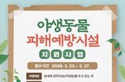 (포탈뉴스통신) 대전 중구는 오는 23일부터 야생동물에 의한 농작물 피해를 예방하기 위해 관내 경작지(농지대장)를 두고 있는 농가를 대상으로 피해예방시설 설치비 지원신청 접수를 시작한다. 이번 지원 사업은 농업용 철선울타리, 전기충격식 목책기 설치를 희망하는 농가에게 설치비용의 60%를 예산범위 내에서 최대 600만 원까지 지원한다. 신청서가 접수되면 현장 확인을 거쳐 4월 초까지 지원 대상자를 최종 선정하여 본격적인 파종기 이전에 설치가 완료될 수 있도록 추진할 예정이다. 지원을 희망하는 농가는 오는 27일까지 기후환경과로 신청서와 사업계획서 등을 제출하면 된다. 김제선 중구청장은 “농업인들이 안심하고 영농에 전념할 수 있는 환경 조성을 위해 최선을 다하겠다” 라며, “유해야생동물로 인한 농작물 피해는 농가 소득과 직결된 만큼 많은 관심과 신청 바란다”라고 말했다. [뉴스출처 : 대전시중구]