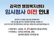 (포탈뉴스통신) 감곡면은 도시재생 인정사업으로 현 감곡면 행정복지센터 부지에 신청사를 건립함에 따라 임시청사로 이전하고, 오는 27일부터 행정서비스를 제공한다고 밝혔다. 임시청사는 감곡도서관(감곡면 장감로131번길 8) 1층과 2층에 마련된다. 1층에는 복지팀과 민원팀이, 2층에는 총무팀·맞춤형복지팀·재무팀·산업개발팀이 배치되며, 운영 기간은 이달 27일부터 청사 준공 시까지이다. 면은 현수막 및 홈페이지 게시, 관내 유관 단체·기관 회의 및 안내문 배부 등을 이용해 임시청사 이전 홍보에 나서 주민들의 혼란과 불편을 최소화하고 있다. 최병원 감곡면장은 “현 청사 부지에 공사가 진행됨에 따라 사업 준공 전까지 주민 불편을 최소화하고 원활한 민원 서비스를 제공하기 위해 임시청사로 이전하게 됐다”며 “행정서비스 제공에 공백이 없도록 최선을 다하겠다”고 말했다. 한편 현 행정복지센터 부지에는 도시재생 인정사업으로 ‘감곡 햇살누리센터’가 신축될 예정이다. 총사업비 약 160억원이 투입되며 지상 3층, 연면적 3294㎡ 규모로 조성된다. 1층에는 감곡면 행정복지센터가 들어서고, 2층에는 생활문화교