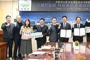 (포탈뉴스통신) 거창군과 한국농어촌공사 거창·함양지사는 지난 11월 6일 구인모 거창군수, 정명석 한국농어촌공사 거창·함양지사장, 청년·여성농업인 대표들이 참석한 가운데 ‘거창군 스마트농업육성지구 조성사업’ 추진을 위한 위·수탁 협약식을 개최했다. 올해 10월 행정안전부 중앙투자심사 통과로 총사업비 200억 원(국비50%, 도비15%, 군비35%) 규모로 추진되는 ‘거창군 스마트농업 육성지구 조성사업’은 거창읍 대평리 일원 총 12ha 부지에 청년농, 승계농을 위한 임대형 스마트팜 단지를 구축하고, 생산-유통-교육-연구 기능을 연계한 복합형 스마트농업 기반을 조성하는 사업이다. 이번 위·수탁 협약은 ‘거창군 스마트농업 육성지구 조성사업’의 효율적인 사업 진행을 위해 체결하게 됐으며, 이번 협약으로 거창군은 사업의 총괄 관리와 행정 지원을 담당하고, 농어촌공사 거창·함양지사는 실시설계, 공사 시행, 준공, 시설 인계인수 등의 역할을 일괄 수행하게 된다. 사업이 완료되면 청년농업인들이 입주하여 첨단 스마트농업 기술을 활용한 고부가가치 농업을 실현하게 되며, 지역 농업의 경쟁력 강화와 미래농업 기반조성에 큰 역할을
