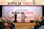 (포탈뉴스통신) 구리시는 노인의 날을 맞아 10월 2일 오전 10시 구리시청 1층 대강당에서 제29회 노인의 날 기념식을 열고 지역 어르신들과 뜻깊은 시간을 가졌다. 이번 행사는 사단법인 대한노인회 구리시지회(지회장 장수용) 주관으로 진행됐으며, 고령사회의 주역인 어르신들의 노고에 감사를 전하고 경로효친 사상을 되새기며 어르신이 존중받는 사회 분위기를 확산하기 위해 마련됐다. 행사는 한국 전통민요 협회 구리시지부의 경기민요 축하공연을 시작으로 유공자 표창, 기념사와 축사 순으로 진행됐으며, 백경현 구리시장, 신동화 구리시의회 의장을 비롯한 주요 내빈과 구리시 거주 어르신, 관계자 등 300여 명이 참석했다. 특히 이날 기념식에서는 100세 이상 장수 어르신들의 건강과 장수를 기원하는 장수 지팡이(청려장) 전달식이 함께 진행됐다. ‘청려장’은 과거 임금이 장수한 신하에게 하사하던 전통 지팡이로, 오늘날에는 노인의 날을 기념해 장수 어르신에게 드리는 상징적인 선물로 이어지고 있다. 백경현 시장은 “우리 사회의 근간이 되어주신 어르신들께 깊은 존경과 감사드린다”라며, “앞으로도 어르신이 행복하고 건강하게