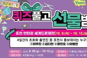 (포탈뉴스통신) 포천시는 시민과의 소통 강화를 위해 10월 12일까지 '포천 한탄강 세계드론제전' 퀴즈 이벤트를 진행한다. 이번 이벤트는 오는 10월 9일부터 12일까지 한탄강 가든페스타 행사장에서 열리는 2025 포천 한탄강 세계드론제전을 홍보하고 시민 참여를 독려하기 위해 마련했다. 참여 방법은 포천시청 공식 누리소통망(SNS)에 게시된 이벤트 글에 ‘좋아요’와 댓글을 남기고, 네이버폼을 통해 정답을 제출하면 된다. 시는 추첨을 통해 100명에게 청정한 포천에서 재배한 밥맛 좋은 포천쌀(4kg)을 제공할 예정이다. 세계드론제전에서는 국내 최대 규모의 드론 라이트쇼와 함께 다양한 공연을 진행한다. 10월 9일에는 비트펠라 하우스, 다이나믹 듀오, 이무진, 진해성이 무대에 서며, 10월 10일에는 효린, 기리보이, 김다현이 공연을 선보인다. 10월 11일에는 이날치 밴드, 장민호, 소유, 국가스텐이 무대를 장식하고, 10월 12일에는 송가인, 이병찬, 울랄라세션이 참여해 화려한 축제의 대미를 장식한다. 각 공연에는 국내 최정상급 아티스트가 참여하며, 올가을 포천에서만 경험할 수 있는 특별한 축제의 기회를 제공한