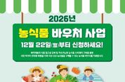 (포탈뉴스통신) 화성특례시는 저소득 취약계층의 영양 개선과 지역 농산물 소비 활성화를 위해 22일부터 ‘2026년 농식품 바우처 지원사업’ 신청을 받는다. 지원 대상은 생계급여(기준 중위소득 32% 이하) 수급자 중 임산부, 영유아, 아동, 청년을 포함한 가구로 1인 가구 월 4만 원, 4인 가구 월 10만 원 등 가구원 수에 따라 차등 지원된다. 지원 기간은 1월부터 12월까지 12개월이다. 지원 품목은 국산 채소, 과일, 육류, 잡곡, 두부류 등 신선 농산물을 구매할 수 있는 전자카드 형태로 제공되며, 농협 하나로마트, 편의점 등에서 사용할 수 있다. 지원 신청은 22일부터 주소지 관할 출장소 및 읍·면 행정복지센터를 방문하거나 온라인, ARS(☎1551-0857) 등을 통해 다양한 경로로 신청할 수 있으며, 2025년 사업 이용 가구로 지원 자격요건을 충족하는 경우 별도의 신청 절차 없이 자동 신청 처리될 예정이다. 기타 자세한 사항은 화성시청 농식품유통과 및 주소지 관할 출장소·읍·면 행정복지센터로 문의하면 된다. 신태식 농식품유통과장은 “이번 농식품 바우처 지원사업을 통해 저