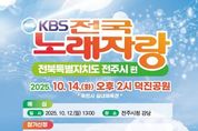 (포탈뉴스통신) 가을이 내려앉은 전주덕진공원에서 대한민국 국민 프로그램인 ‘KBS 전국노래자랑’이 펼쳐진다. 전주시는 오는 14일 오후 2시, 덕진공원 특설무대에서 시민과 함께하는 전국민적 노래 경연 프로그램인 ‘KBS 전국노래자랑 전주시편’이 진행된다고 10일 밝혔다. 이번 녹화에는 지난 9월 선착순으로 모집한 300팀의 예심 참가자들 중 치열한 경쟁을 거쳐 본선 진출에 성공한 참가자들이 무대에 올라 각자의 재능과 열정을 선보이게 된다. 특히 이번 전주시편 예심에는 접수가 시작된 지 이틀 만에 선착순 300팀이 마감될 정도로 전주시민들의 높은 관심과 참여 열기를 나타내기도 했다. 이날 본선 녹화 현장에는 2000여 명의 시민 관람객이 함께할 것으로 예상되며, 세대를 아우르는 흥과 끼가 어우러진 대규모 시민 축제의 장으로 꾸며질 예정이다. 시는 이번 행사가 시민 화합은 물론, 전주의 문화·관광적인 매력을 전국적으로 알리는 계기가 될 것으로 기대하고 있다. 전주시 관계자는 “전국노래자랑은 대한민국을 대표하는 국민 참여형 프로그램으로, 시민 누구나 주인공이 될 수 있는 무대”