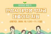 (포탈뉴스통신) 안성시는 오는 10월 1일부터 11월 7일까지 ‘2025년도 하반기 안성시 대학생 학자금 대출이자’ 지원 신청을 받는다. 지원 대상은 공고일(2025. 10. 1.)기준으로 안성시에 주민등록 주소를 두고 재학(휴학 포함)중인 대학(원) 재학생(휴학생)이다. 지원 대상자로 선정되면 대상자가 한국장학재단에서 대출받은 학자금에 대한 2025년 상반기(1월~6월) 발생 이자를 안성시가 지급하게 된다. 지급은 대출 계좌 원리금에서 차감하는 방식으로 진행되며, 지원 내역은 12월 지급이 확정된 시점에 한국장학재단 인터넷 홈페이지에서 확인할 수 있다. 신청 방법은 주소지 읍·면·동 행정복지센터 또는 안성시청(미래교육과)으로 방문하여 접수하면 된다. 안성시 관계자는 “학자금 대출이자 지원 사업을 통해 대학생들의 학업 부담을 완화하고, 학업에 전념할 수 있는 환경을 조성하는데 도움이 되길 바란다”고 전했다. [뉴스출처 : 경기도 안성시]