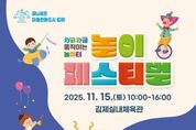 (포탈뉴스통신) 김제시는 아이들이 자유롭게 놀며 성장하는 아동친화도시 실현을 위해 오는 15일, 김제실내체육관 및 주차장 일대에서 와글와글 움직이는 놀이터,‘제2회 놀이페스티벌’행사를 개최한다고 밝혔다. 이번 행사는 아동친화도시 퍼포먼스를 시작으로, 어린이와 청소년, 부모, 조부모까지 전 세대가 함께 어울리는 즐거운 축제의 장으로 마련된다. 행사장에서는 ▲ 마술 및 버블 공연, ▲ 에어바운스 놀이터 등 다채로운 체험 프로그램이 준비돼 있으며, ▲ 대동놀이(단심줄놀이, 강강술래, 줄다리기), ▲ 김제형 딱지치기대회, ▲ 터널형 놀이마당(과거, 현재, 미래 놀이), ▲ 명랑운동회 등 전통 놀이를 통해 세대 간 협동과 화합의 즐거움을 나눌 수 있다. 특히, 영유아존은 부모와 아기가 함께하는 감성 놀이와, 눈처럼 반짝이는 미리 크리스마스 겨울왕국이 테마 체험이 운영돼 아이들에게 특별한 추억을 선사한다. 또한, 아동권리존에서는 아이들이 놀이를 통해 자신의 권리를 배우고 스스로의 생각을 표현할 수 있는 참여형 체험 프로그램이 진행된다. 최미화 교육가족과장은 “이번 놀이페스티벌은 아이들이 마음껏 뛰놀며 웃을 수 있는 축제이자, 지역사회가 함께 만드는 아동친화도시의 상징적