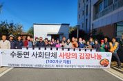 (포탈뉴스통신) 남양주시는 10일 수동면에서 7개 사회단체가 함께 취약계층을 위한 ‘사랑의 김장 나눔’ 행사를 진행했다고 밝혔다. 이번 행사는 경기도농수산진흥원이 주관한 ‘경기농식품 나눔문화 확산사업’ 공모에 수동면 주민자치회가 선정돼, 농산물 소비 촉진 및 취약계층 대상 지역공동체의 나눔 문화 확산을 위해 마련됐다. 행사에는 수동면 이장협의회, 주민자치회, 새마을남녀지도자, 체육회, 바르게살기위원회, 적십자회, 지역사회보장협의체 등 7개 단체, 80여 명이 힘을 모아 김치를 정성껏 담갔다. 이날 마련된 김치 100통은 수동면 관내 독거노인, 장애인, 복지사각지대에 놓인 저소득층 가정 등에 전달됐다. 특히 각 사회단체별로 회원들이 김장 김치를 직접 전달하며 이웃의 안부를 살폈다. 이진춘 수동면장은 “경기도의 지원과 지역 7개 단체의 협력이 더해져 이웃에게 따뜻한 마음을 전할 수 있었다”며 “앞으로도 정성과 마음을 담은 나눔이 계속될 수 있도록 적극 지원하겠다”고 말했다. 수동면은 앞으로도 이웃과 함께하는 따뜻한 나눔과 돌봄이 일상 속에 스며들 수 있도록 지속적인 노력을 이어갈 예정이다.