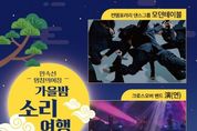 (포탈뉴스통신) 시원한 바람이 부는 가을 판소리의 고장 남원시에서는 우리 전통 소리의 깊이를 느낄 수 있는 가을밤 소리여행 공연이 안숙선명창의 여정 야외에서 10월 31일 저녁 19시에 열린다. 판소리와 국악의 멋과 흥을 보존하고 전승 발전하는데 기여하는 예술인들이 출연하여 세대를 아우를 수 있는 또 하나의 멋진 공연으로 10월 가을밤을 아름다운 우리의 소리로 수 놓으려고 한다. 이번 ‘가을밤 소리여행’에서는 모듬북의 아퀴팀, 컨템포러리 댄스그룹 모던테이블, 판소리 서의철, 고수 전계열 등 젊은 예술인들의 무대로 안숙선명창의 여정 야외무대에서 공연을 선보일 예정이다. 국가무형문화유산 판소리 ‘춘향가’의 보유자인 안숙선국창은 “청명한 가을 밤, 국악계 선·후배님들의 멋진 무대를 응원하고 우리 음악을 사랑하는 모든 분께 감사드린다”며 여러분들의 많은 관람을 부탁한다고 말했다. [뉴스출처 : 전라북도 남원시]
