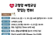 (포탈뉴스통신) 원주시 동부복합생활지원센터는 오는 23일부터 고혈압 예방 요리교실 ‘맛있는 밥상’ 프로그램 참여자를 모집한다. 교육은 3월 6일과 13일, 20일에 총 3회 비대면으로 운영된다. 교육일 오전 10시 30분부터 11시 30분까지 1시간 동안 영양교육과 요리 실습이 진행될 예정이다. 모집 인원은 지역 주민 20명이며, 수강료는 무료다. 신청은 2월 23일 오전 9시부터 원주시 통합예약플랫폼을 통해 선착순으로 접수한다. [뉴스출처 : 강원도 원주시]