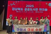 (포탈뉴스통신) 구미시는 지난 15일 열린 ‘2025 경상북도 공공도서관 워크숍’ 내 ‘공공도서관 운영평가 시상식’에서 도내 43개 공공도서관 중 전체 1위를 차지했다. 그룹별 평가에서도 구미시립중앙도서관이 A그룹 대상을, 구미도시공사 소속 봉곡도서관이 B그룹 우수상을 받으며 2년 연속 두 개관이 동시에 수상하는 성과를 거두었다. 이번 평가는 △예산 △장서 △사서 △공간 △서비스 △협력 △경영계획 △우수사례 등 8개 항목, 13개 지표를 기준으로 전년도(2024년) 실적을 종합적으로 검토해 이뤄졌다. 구미시립중앙도서관은 예산과 장서 확충, 전문사서 배치, 대출·프로그램 운영 증가, 우수사례 선정 등 전 부문에서 고르게 높은 점수를 받으며 A그룹 최고 점수를 기록했다. 봉곡도서관 역시 서비스 프로그램 운영 강화와 지역 협력 기반 확대로 긍정적인 평가를 받았다. 구미시의 연이은 수상은 체계적인 도서관 운영과 꾸준한 인프라 투자, 시민 이용 활성화 노력이 반영된 결과다. 구미시는 도서관을 문화·학습·소통이 결합된 지역 플랫폼으로 키우기 위해 공간 개선, 자료 확충, 디지털 기반 서비스 확대 등을 지속적으로 추진해 왔다. &nbs