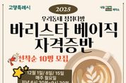 (포탈뉴스통신) 고양특례시가 고양시에 거주하거나 활동(재학, 재직)하는 청년들을 대상으로 카페 취·창업에 적용할 수 있는 ‘바리스타 베이직 자격증반’을 운영한다. 바리스타 베이직 자격증반은 카페 취·창업에 관심이 있는 청년들에게 카페 실무 역량을 기를 기회를 제공하고자 마련됐다. 수업은 ‘행신동 우리동네 청취다방’ 커네스브루잉스팟에서 열린다. 본 과정은 마스터오브마스터 챔피언, 마스터오브카페 시즌10 그랜드슬램 달성 등 다수의 수상 경력을 가진 커네스브루잉스팟의 차미경 대표 직강으로 진행되며, ASCA(아시아스페셜티커피협회)의 IBC 인터내셔널 코스 베이직 자격증 발급 과정이다. 프로그램은 총 3회(12월 1일, 8일, 15일 매주 월요일 18:30~21:30)에 걸쳐 진행되며, 교육을 모두 이수하면 별도의 시험 없이 해당 자격증을 취득할 수 있다. 강의는 카페 실무에 가장 핵심이 되는 에스프레소 추출 기법을 주로 다루고 라떼아트 실습, 카푸치노 등 실전 음료 만들기도 포함된다. 12일부터 10명의 수강생을 선착순 모집하며, 18~39세 이하 고양시 거주 및 재학, 재직 청년이면 신청이