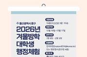 (포탈뉴스통신) 울산 중구가 12월 10일부터 12월 17일까지 ‘2026년 겨울방학 대학생 행정체험’ 참여자 15명을 모집한다. 모집 대상은 본인 또는 부모 가운데 한 명 이상이 중구에 주소를 두고 있는 상태에서 대학교에 재학 중이거나 복학 신청을 한 18세 이상 대학생이다. 참여를 희망하는 경우 중구청 일자리정책과를 직접 방문하거나 전자우편을 통해 신청서를 제출하면 된다. 중구는 국민기초생활보장수급자·차상위가구·한부모가정 학생 등을 전체 모집 인원의 20% 범위 내에서 우선 선발하고, 나머지 인원은 무작위 공개 추첨으로 선발할 예정이다. 선발 결과는 오는 12월 30일 중구청 누리집에 게시된다. 대학생 행정체험 참여자는 내년 1월 9일부터 2월 5일까지 평일 오전 9시부터 오후 6시까지 점심시간을 제외하고 하루 8시간 동안 구청과 동(洞) 행정복지센터, 지역아동센터 등에서 민원 안내, 자료 정리 업무 등을 하게 된다. 자세한 사항은 중구청 누리집에서 확인할 수 있다. 중구 관계자는 “이번 행정체험 프로그램이 행정의 역할을 이해하고 나아가 진로를 모색하는 기회
