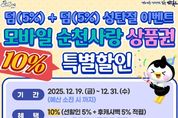(포탈뉴스통신) 순천시는 연말 소비 진작과 지역경제 활성화를 위해 오는 19일부터 31일까지 ‘모바일 순천사랑상품권 크리스마스 특별 할인 행사’를 진행한다고 밝혔다. 이번 행사는 선할인 5%와 후(後) 캐시백 5%를 더한 총 10% 할인 혜택을 제공한다. 시민들은 모바일 순천사랑상품권을 구매하는 즉시 5% 선할인을 받고, 사용 후 추가로 5% 캐시백 혜택을 누릴 수 있다. 특히 캐시백 5%는 국비 지원 사업으로 추진되는 만큼 예산 소진 시 조기 종료될 수 있어, 시민들의 빠른 참여가 필요하다. 시는 이번 행사가 크리스마스와 연말 소비 성수기와 맞물려 지역 내 소비를 자연스럽게 끌어올리는 계기가 될 것으로 기대하고 있다. 시는 올해 2,000억 규모의 지역사랑상품권 발행을 통해 자금의 역외 유출을 막고, 골목상권과 전통시장, 소상공인 매출 증대에 실질적인 효과를 거둬왔다. 실제로 상품권 이용은 대형 유통업체가 아닌 지역 내 가맹점 중심으로 소비가 이뤄져, 지역경제 선순환 구조를 만드는 핵심 수단으로 평가받고 있다. 시 관계자는 “연말과 크리스마스를 맞아 시민들에게
