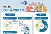 (포탈뉴스통신) 전남 무안군은 노인 복지 정책 수립의 기초자료로 활용하기 위해 ‘2025년 무안군 노인등록통계’를 신규 작성하여 그 결과를 공표했다. 이번 통계는 ▲인구·가구 ▲경제 ▲ 일자리 ▲복지 ▲ 건강 등 5대 분야 총 59개 항목으로 구성됐으며, 무안군 각 실과, 국가데이터처, 한국고용정보원, 국민건강보험공단 등 관련 공공기관에서 생산한 행정자료와 기존 통계자료를 연계 및 분석하여 개발했다. 조사 대상은 2024년 12월 말 기준 무안군에 주민등록이 된 만 65세 이상 노인이다. 공표 결과, 2024년 말 기준 무안군 노인 인구는 18,398명으로 전체 인구 92,913명 가운데 19.8%를 차지한다. 이는 전국 평균(20%)과 비슷한 수준으로 초고령화 지역으로 진입했으며, 노인 관련 행정 수요가 지속적으로 확대되고 있음을 보여준다. 이번 공표된 무안군 노인등록통계는 무안군 홈페이지 ‘행정공개 → 군정자료 → 노인등록통계’에서 군민 누구나 확인할 수 있다. 이광진 기획실장은 “노인등록통계는 노인의 삶의 질 향상을 위한 각종 정책 수립의 기초자료로 활용되는 중요한 통