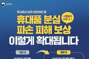 (포탈뉴스통신) 학교에서 보관·관리하던 중 휴대품 분실·파손 피해 보상 이렇게 확대됩니다. (시행일자 2026.4.1.) ■ 개정 전 보상대상 휴대품: 3종 - 휴대폰, 태블릿PC, 노트북 - 보상한도 100만 원 ■ 개정 후 보상대상 휴대품 확대: 3종 → 5종 - 휴대폰, 태블릿PC, 노트북 (신규) 무선이어폰, 스마트워치 - 보상한도 확대 100만 원 → 200만 원 [뉴스출처 : 교육부]