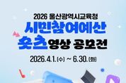 (포탈뉴스통신) 울산광역시교육청이 시민의 목소리를 교육 예산에 담는 ‘시민참여 예산제’를 널리 알리고자 특별한 영상 공모전을 개최한다. 울산교육청은 4월 1일부터 6월 30일까지 울산 시민을 대상으로 ‘시민참여 예산제 짧은 영상(숏츠) 공모전’을 연다. 이번 공모전은 시민이 직접 제작한 영상을 통해 제도의 이해를 돕고 참여를 확산하기 위해 마련됐다. 특히 짧은 영상 중심의 대중적인 흐름에 맞춰 예산 사업을 쉽고 흥미롭게 알린다는 취지다. 공모 주제는 시민참여 예산제를 쉽고 개성 있게 소개하는 내용이다. 울산 시민이면 누구나 개인 또는 4인 이하 팀으로 참여할 수 있으며, 창의적이고 다양한 시각을 담은 작품 발굴에 중점을 둔다. 출품작은 30초 이내의 세로형 영상이어야 하며, 반드시 참가자가 직접 제작한 순수 창작물이어야 한다. 접수를 희망하는 시민은 기간 내에 참가신청서와 작품 파일을 담당자 전자우편으로 제출하면 된다. 단, 드론 등을 활용한 항공 촬영이 포함될 경우 관련 법규를 반드시 준수해야 한다. 심사는 영상 제작 전문가 등 7명