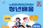 (포탈뉴스통신) 서울 노원구가 청년들을 위한 평생학습센터 '청년 배움'을 개소한다고 밝혔다. 구는 그간 청년들의 평생학습 기회 확대를 위해 한국성서대학교와 협력해 ‘다 담다’ 프로젝트를 운영해 왔다. 이를 통해 쌓은 경험과 성과를 바탕으로, 보다 안정적이고 지속적인 교육 제공을 위해 ‘청년 배움’을 개소하고, 구 직영으로 운영한다. ‘청년 배움’은 지난 8월 시범운영을 시작해 10월 1일 정식 개관했다. 운영 시간은 평일 오전 10시부터 오후 8시까지, 토요일은 오전 10시부터 오후 5시까지이며, 일요일과 공휴일은 휴관한다. 시범운영 기간동안 ‘청년 맞춤 발성훈련 클래스’, ‘바른자세 만들기 SNPE’, ‘몸과 마음 힐링 스트레칭’ 등 프로그램이 운영됐으며, 모든 강좌가 접수 당일 마감되는 등 높은 호응을 얻었다. 정식 개관 후 프로그램은 취업 및 실생활에 밀접하게 연관된 4개 영역 27개 과정으로 구성됐다. ‘청년 실전 up’ 영역에서는 ▲커뮤니케이션 및 면접 스피치 ▲브이로그 콘텐츠 기획 ▲소비 습관 진단 ▲브랜딩 스토리 등 7개 실전형 프로그램이 운영된다. ‘청년 마음 up’은 ▲