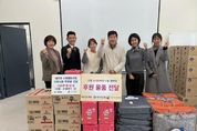 (포탈뉴스통신) 과천시 갈현동은 26일 갈현동 행정복지센터에서 ‘새안양신협’과 겨울철 취약계층을 지원하기 위한 기부 물품 전달식을 가졌다. 이날 전달식에는 ‘새안양신협’ 이상영 이사장, 갈현동장 등이 참석했으며, ‘새안양신협’은 갈현동에 생필품 꾸러미 20박스, 라면 10박스, 이불 3채, 온열매트 6채(약 155만 원 상당)를 기부했다. 기부된 물품은 저소득 취약계층의 따뜻한 연말연시를 위해 전달될 예정이다. ‘새안양신협’은 2023년 갈현동 행정복지센터 개청 이래, 매년 설 명절에 떡국떡 및 기부금을 후원하는 등 취약계층을 위한 기부활동에 꾸준히 동참하며 나눔을 실천하고 있다. ‘새안양신협’ 이상영 이사장은 “어려운 이웃들이 따뜻한 겨울을 나는 데 조금이나마 도움이 됐으면 좋겠다”라며 “앞으로도 지역 내 도움이 필요한 이웃들을 위해 나눔 활동에 적극 앞장서겠다”라고 전했다. 이태헌 갈현동장은 “어려운 이웃들을 위해 변함없이 의미 있는 나눔을 실천해 주고 계시는 ‘새안양신협’ 이상영 이사장님께 감사드린다”라며 “기부하신 물품은 도움이 필요한 분들에게 소중히 전달하겠다”라고 말했다. 한