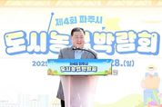 (포탈뉴스통신) 파주시는 운정건강공원에서 지난 26일부터 3일간 ‘젊은 농부와 도시가 만나다’를 주제로 열린 ‘제4회 파주시도시농업박람회’를 성황리에 마치고, 도시민과 농촌이 하나 되는 자리를 통해 파주시 도시농업의 미래 가능성을 제시했다고 밝혔다. 전시공간과 체험공간을 운영, 도심에서는 보기 어려운 목화, 대추나무, 레몬, 까치콩, 달가지 등 여러 가지 농작물 전시와 도시농업 작품 전시를 통해 도시민이 농업에 쉽게 접근하고 이해할 수 있도록 꾸몄다. 삼색경단꼬치·바람떡 만들기, 다육정원·관엽정원 만들기, 전통 다식 등 다양한 체험 프로그램과 거리공연(버스킹), 동극, 비눗방울 공연 등의 가족단위 공연 프로그램은 방문객들의 뜨거운 반응을 이끌어 냈다. 또한 시에서 배출한 도시농업관리사들의 숨은 기량을 뽐내는 ‘제2회 도시농업관리사 작품 전시전’과 관내 4개 중고등학교 학생들이 직접 참여한 ‘청소년 도시농업 경연대회’, 파주시 어린이집에서 직접 재배한 ‘벼 화분 전시’는 관람객들의 눈을 즐겁게 했다. 박람회는 잔디광장 텃밭 정원에 심었던 여러 가지 쌈 채소와 도시농업관리사 전시 작품들을 나누고 기부하는 행사로 마