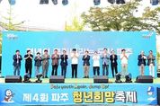 (포탈뉴스통신) 파주시는 지난 27일 금릉역 앞 중앙광장에서 열린 ‘제4회 파주 청년희망축제’가 시민들의 뜨거운 호응 속에 성공적으로 마무리됐다고 밝혔다. 올해 축제는 ‘파주청년, 다시 도약하다!(Paju Youth Again, Jump Up!)’을 주제로, 도약하는 청년세대의 열정과 활력을 시민과 함께 나누는 장으로 마련됐다. 이번 축제의 백미는 개막식과 함께 진행된 ‘파주 청년 비전선포식’이었다. 청년정책협의체 공동위원장은 무대에서 ‘청년이 뿌리내리는 도시, 파주’라는 비전을 선포하며, 청년과 지역사회가 함께 나아갈 미래의 방향을 제시했다. 특히 청년들이 직접 낭독한 선언문과 청년친화도시 지정을 위한 기념행사는 파주시의 확고한 의지를 대외적으로 알리는 계기가 됐다. 오후 2시부터 8시까지 진행된 이번 축제는 ▲사전공연 ▲청년 골든벨 ▲청년 가요제 ▲청년공간 특별강좌 ▲프리미엄 수제 맥주 시음 ▲청년창업가 플리마켓 ▲무료 체험공간 ▲대형 ‘파랑’ 포토존 등 다채로운 프로그램으로 꾸려졌다. 가요제 무대에서는 청년들의 끼와 열정이 빛났으며, 청년창업가 판매공간 및 수제 맥주 시음 공간은 청년 창업 아