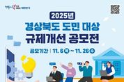 (포탈뉴스통신) 경상북도는 ‘2025년 경상북도 도민 대상 규제개선 공모전’을 개최한다. 이번 공모전은 도민이 체감하는 불편한 제도나 절차, 지나치게 복잡한 인허가 절차에 대해 도민의 목소리를 직접 듣고 이를 제도개선에 반영하는 것에 목적이 있다. 이번 공모전은 경상북도에 거주하거나 경상북도에 있는 직장인·학생 등이라면 누구나 참여할 수 있다. 다만, 공무원의 경우 별도의 규제혁신 아이디어 공모전을 시행함에 따라 제외된다. 공모 분야는 지역산업육성, 보조금 지원, 투자유치 촉진 등 민생과 밀접한 민생 규제와 기업·소상공인 등에게 과도한 기준을 해석·적용하는 그림자 규제, 법령에서 규정하고 있지 않더라도 행정절차 지연 처리 등을 해결할 수 있는 통합심의로 구성되어 있으며, 그밖에 도민 생활 전반에 대한 규제 개선 사항도 제출할 수 있다. 공모전 참여를 원하는 경우 6일부터 26일까지 공모전 신청서와 개인정보 수집 및 이용 동의서를 담당자 전자메일 혹은 우편으로 제출하면 된다. 수상자에게는 경상북도지사 상장이 수여되며, 총상금은 500만원으로대상(100만원), 최우수(각70만원