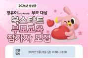 (포탈뉴스통신) 영암군이 ‘2026 북스타트 주간’을 맞아 영유아 부모를 위한 부모교육을 운영한다. 이번 교육은 그림책을 통해 아이와 자연스럽게 소통하는 방법을 나누고, 부모들이 책 읽기 과정에서 겪는 고민을 함께 풀어보기 위해 마련됐다. 강연은 북스타트코리아 자문위원이자 늘푸른어린이도서관장인 박소희 관장이 맡아 ‘아이에게 주는 첫 문장, 부모라는 이름의 선물’을 주제로 진행한다. 강연에서는 어떤 책부터 시작해야 할지 고민될 때, 아이가 내용을 다 듣기 전에 넘길 때의 대처 방법 등 실제 양육 과정에서 자주 겪는 사례를 중심으로 이야기를 풀어갈 예정이다. 또한 현장 교육과 함께 아동권리보장원의 ‘대한민국 긍정양육 프로젝트, 오늘부터 긍정양육’ 영상도 제공해 가정에서도 활용할 수 있도록 지원할 예정이다. 교육은 5월 22일 영암군 가족센터 해마루에서 진행되며, 관내 1~7세 자녀를 둔 부모 30명을 대상으로 한다. 신청은 5월 20일까지 영암·삼호·학산 도서관에서 선착순 접수한다. 최복용 영암군 인재육성체육과장은 “그림책이 부모와 아이를 이어주는 계기가 되길 바란다”며 “앞으로도 일상에