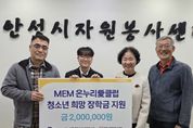 (포탈뉴스통신) 지난 25일, 안성시자원봉사센터는 머크일렉트로닉머티리얼즈㈜ 임직원 봉사단인 ‘머크 온누리愛클럽’과 함께 관내 학생을 위한 ‘희망장학금’ 전달식을 가졌다. 이번 장학금은 학업에 대한 열의가 높고 성실한 지역 내 학생을 격려하기 위해 마련됐으며, 머크 임직원들이 자발적으로 조성한 후원금을 바탕으로 전달되어 의미를 더했다. 머크 온누리愛클럽은 그동안 안성 지역사회를 위해 다양한 봉사활동과 기부를 이어오며 기업의 사회적 책임을 실천하고 있는 임직원 중심의 봉사단체다. 김동성 센터장은 “어려운 외부 환경에서도 꿈을 향해 정진하는 학생에게 이번 장학금이 큰 힘이 되길 바란다”라며, “매년 잊지 않고 지역 인재 양성을 위해 따뜻한 정성을 모아주시는 머크 온누리愛클럽에 깊은 감사를 드린다”라고 말했다. 머크 온누리愛클럽 정재훈 회장은 “임직원들의 작은 정성이 학생의 소중한 꿈을 지탱하는 마중물이 되길 바란다”라며, “우리 주변의 이웃을 살피고 지역사회와 함께 성장할 수 있는 나눔 활동을 지속적으로 펼치겠다”라고 화답했다. 한편, 안성시자원봉사센터는 다양한 이해관계자의 지역사회 공헌 활