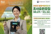 (포탈뉴스통신) 남원시는 ‘2025년 농림어업총조사’의 성공적 추진을 위해 조사요원 총 111명 (조사관리요원 15명, 조사원 96명)을 오는 11월 12일까지 모집한다. 이번 조사는 현재 진행 중인 2025 인구주택총조사(10월 22일 ~ 11월 18일)에 이어 실시되는 5년 주기의 전국 단위 통계조사로, 전국 농림어가를 대상으로 그 규모, 분포, 구조 및 경영형태 등을 파악하여 농림어업 정책 수립의 기초자료로 활용되는 중요 조사이며 오는 11월 20일부터 12월 22일까지 실시 할 예정이다. 모집 조사요원은 18세 이상(2007.12.31.이전 출생) 태블릿 PC 등 스마트기기 활용이 가능하고 통계조사에 대한 책임감이 있는 사람이면 누구나 가능하다. 기타 자세한 사항은 남원시청 누리집 및 농림어업총조사 홈페이지를 통해 확인할 수 있으며, 희망자는 남원시청 기획예산과 방문 또는 농림어업총조사 홈페이지에서 인터넷 접수를 통해 신청할 수 있다. 시 관계자는 “농산어민의 좋은 답을 들어 줄 성실하고 책임감 있는 분들의 많은 지원을 바란다.”라고 밝혔다. [뉴스출처 : 전라북도남원시]
