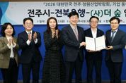 (포탈뉴스통신) 전주덕진공원에 ㈜전북은행과 함께 만들고, 모든 시민이 함께 누리는 정원이 조성된다. 전주시와 ㈜전북은행, (사)더숲(대표 정명운)은 3일 시청 3층 소회의실에서 윤동욱 전주시장 권한대행 부시장과 김은호 전북은행 부행장, 정명운 (사)더숲 대표 등이 참석한 가운데 ‘2026 대한민국 전주정원산업박람회’ 기업동행정원 조성을 위한 업무협약을 체결했다. 이날 협약에 따라 세 기관은 올해 전주에서 열리는 ‘2026년 대한민국 전주정원산업박람회’와 연계해 덕진공원에 기업동행정원을 조성, 정원도시 전주의 위상을 높이고 지역 정원문화 확산에 힘을 모으기로 했다. 덕진공원에 대한민국 전주정원산업박람회와 연계해 기업동행정원을 조성키로 한 것은 전북현대모터스FC와 ㈜포스코이앤씨, 대자인병원에 이어 전북은행이 네 번째이다. 전북을 대표하는 금융기관으로써 그동안 소상공인·중소기업 지원과 사회공헌 활동을 통해 지역경제 버팀목 역할을 해온 전북은행은 이번 기업동행정원 조성을 통해 지역상생철학을 시민 체감형 공공공간으로 구현한다는 구상이다. 시는 이번 협약에 따라 덕진공원 내 기업동행정원이 들어설