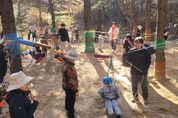 (포탈뉴스통신) 울산광역시교육청은 지난 29일과 6일 울주군 선바위 공원 일원에서 울산지역 영유아 가족을 대상으로 자연 속 놀이 체험 프로그램인 ‘솔솔 팝업 놀이터-숲 밧줄 생태 놀이’를 운영했다. 이번 행사는 영유아들이 보호자와 함께 지역의 자연환경을 마음껏 즐기고, 다양한 신체 활동을 경험하며 몰입의 즐거움과 스스로 해냈다는 자신감을 경험할 기회를 제공하고자 마련됐다. 이날 행사에는 울산에 거주하는 0~5세 영유아와 보호자 등 가족 167팀이 참여했으며, 안전한 환경에서 자유롭고 충분한 체험을 즐길 수 있도록 하루 3회차로 나눠 진행됐다. ‘솔솔 팝업 놀이터’는 아이들의 모험심과 창의력을 자극하는 다채로운 프로그램으로 꾸며졌다. 참가 가족들은 숲에서 즐기는 밧줄 놀이로 짚라인, 외줄 다리, 바구니 그네, 무지개 트램펄린과 자연물로 만드는 크리스마스 장식, 대나무 놀이 등 생태 활동을 함께하며 가족 간의 유대감을 쌓고 즐거운 추억을 만들었다. 특히, 자연에서 즐기는 밧줄 놀이는 아이들이 자기의 신체 움직임을 조절하며 도전 의식을 키울 수 있어 학부모들의 큰 호응을 얻었다. 울산교육청