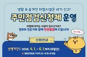 (포탈뉴스통신) 고성군은 2026년 집중안전점검 기간(4월 20일~6월 19일) 동안 군민이 직접 참여하는'2026년 집중안전점검 주민점검신청제'를 운영한다고 밝혔다. '주민점검신청제'는 집중안전점검 과정에 군민이 직접 생활 속 위험요소를 조기에 발굴하여 점검신청을 할 수 있도록 마련됐으며, 안전점검이 필요한 시설물 등에 대하여 군민의 의격을 적극 수렴하여 사각지대 해소를 위한 제도이다. 특히 올해는 전년도보다 한층 더 활성화하여 안전취약계층 및 민생중심시설 등을 중점으로 추진하여 예방 중심의 안전관리체계를 강화하는 데 가장 큰 목적을 두고 있으며, 군민들의 적극적인 참여를 통해 생활 속 안전 사각지대를 해소하고 행정과 군민이 함께 만들어가는 예방 중심의 안전관리체계를 강화할 방침이다. 점검대상은 △공장시설 △공동주택 △숙박시설 △다중이용시설 △체육시설 등 행정안전부에서 지정한 20종 시설유형과 안전취약계층 및 민생중심시설 등으로 사회적 관심에 발맞추고 실생활과 밀접한 다양한 시설이 해당된다. 군민들은 읍면사무소를 방문하거나 안전신문고 앱, 포털을 통해 점검 시설물을 신청할 수 있으며, 접수된 사항