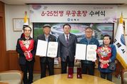 (포탈뉴스통신) 김해시는 6·25전쟁에 참전해 혁혁한 전공을 세웠으나 전후 혼란한 상황으로 인해 그동안 훈장을 받지 못했던 고 강소용 하사, 고 석종철 일병 유족에게 국방부장관을 대신해 화랑무공훈장을 전수했다고 2일 밝혔다. 이는 국방부와 육군이 추진하는 ‘6·25 무공훈장 찾아주기 사업’을 통해 70여년만에 명예를 되찾아드린 의미 있는 자리였다. 고 강소용 하사는 1951년 28세의 나이에 입대해 강원 고성지구 전투에서 전사했고 고 석종철 일병은 1950년 26세의 나이에 입대해 강원 홍천지구 전투에서 혁혁한 공을 세우고 전사했다. 훈장을 전수받은 유족들은 "조국을 위해 헌신하신 선친들의 명예를 70년 만에 되찾아주신 것에 깊이 감사드리며, 이런 뜻깊은 자리를 마련해주신 시에도 감사드린다”고 말했다. 김해시 관계자는 “이제라도 참전유공자분들의 고귀한 희생을 기리고 명예를 회복시켜 드릴 수 있어 기쁘고 영광스럽다. 국가유공자들의 합당한 예우를 강화하고 그 명예를 드높이는 데 노력하겠다”고 말했다. [뉴스출처 : 경상남도김해시]
