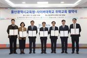 (포탈뉴스통신) 울산광역시교육청은 4일 10시 집현실에서 사이버대학 6곳과 교직원 위탁교육 활성화를 위한 업무협약을 맺었다. 이번 협약은 울산교육청 소속 교직원의 자기 계발을 체계적으로 지원해 미래형 평생학습 환경을 조성하고, 교육 전문성을 높이고자 마련됐다. 협약식에는 천창수 교육감을 비롯해 경희사이버대학교, 고려사이버대학교, 사이버한국외국어대학교, 서울사이버대학교, 원광디지털대학교, 한양사이버대학교 등 6곳의 대학 관계자가 참석했다. 협약에 따라 울산광역시교육청 소속 교직원이 산업체 위탁 전형으로 해당 대학에 입학할 경우, 학부 과정은 수업료 50%, 대학원 과정은 20~50% 감면 혜택을 받는다. 지원 대상은 공무원과 교육공무직원, 사립학교 교직원까지 모두 포함된다. 천창수 교육감은 “사이버대학교와 협력해 울산 교육공동체가 유연하게 배우고 성장할 수 있는 기반을 마련했다”라며 “앞으로도 교직원의 평생학습을 꾸준히 지원해 교육의 질을 높이는 데 힘쓰겠다”라고 말했다. [뉴스출처 : 울산시교육청]