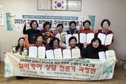 (포탈뉴스통신) 김해시는 진례면 화전마을이 지난 30일 ‘실버케어 상담사 전문가 과정반’ 수료식을 개최했다고 밝혔다. ‘실버케어 상담사 전문가 과정반’은 화전마을 주민이 주축이 되어 취약계층을 대상으로 전문 노인케어 상담 서비스를 제공하기 위해 상담 역량을 향상시키는 교육으로 ▲노인상담 기초, ▲노인문제와 상담, ▲미술치료 등 총 8회차로 구성하여 8월부터 추진됐으며, 교육생 10명 모두 실버케어 상담사 자격증을 취득했다. 특히 자격증을 취득한 주민들은 진례면 농촌마을의 취약계층 돌봄을 위해 화전돌보미 자체활동반으로 활동하며 주민 중심 맞춤형 돌봄 네트워크를 구축할 계획이다. 교육 수료생인 화전마을 배점남 주민은 “이번 교육을 통해 주민들과 함께 나를 알아가고, 서로 알아가는 시간을 보내면서 마음에 있는 이야기를 꺼내니 그간 쌓인 답답한 마음이 풀리는 기분이었다”라며, “이번 실버케어 상담사 교육을 통해 배운 기술을 바탕으로 돌봄 활동을 진행하여 우리 주민들이 요양원에 가지 않고 집에서 건강한 노후를 보낼 수 있도록 열심히 참여하겠다”고 말했다. 한편, 진례면 화전마을은 30년 이상 노후주택이 7