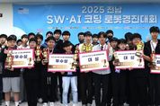 (포탈뉴스통신) 전라남도는 청소년의 창의적 문제해결력과 인공지능 융합 역량을 한층 강화하는 위한 2025 전남 SW·AI 코딩 로봇경진대회를 지난 10월 31일까지 이틀간 나주 동신대학교에서 개최했다고 밝혔다. ‘도시의 문제를 해결하는 스마트 로봇’을 주제로 열린 이번 대회는 전남도, 전남도교육청, 나주시가 공동으로 주최하고 (재)전남정보문화산업진흥원이 주관했다. 전남 초·중·고등학생 30개 팀(90명)이 2인 1조로 참가해 일상에서 발견한 문제 해결을 위한 아이디어를 바탕으로 로봇 코딩 실력을 겨뤘다. 평가는 팀별 아이디어 과제 발표, 직접 제작한 로봇 경기로 진행됐다. 경진대회는 교구재를 사전 배부하고 교육해 경험이 부족한 학생들도 쉽고 즐겁게 참여할 수 있도록 하고, 소속 학교 지도교사의 피드백을 통해 로봇과 코딩에 대한 이해도를 높였다. 초등, 중등, 고등 부문별로 각각 대상 1팀, 최우수상 1팀, 우수상 1팀을 선정, (재)전남정보문화산업진흥원장상과 상금이 수여됐다. 대상은 ▲초등부 여수 여도초등학교(Y.E.S.1) ▲중등부 나주 영산중학교(평가문제집) ▲고등부 순천 효산고등학