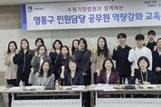 (포탈뉴스통신) 수원시 영통구는 지난 25일, 영통구청 상황실에서 구청 및 12개 동 민원 담당 공무원을 대상으로 수원가정법원과 함께하는 역량 강화 교육을 실시했다. 이날 특별 초빙된 수원가정법원 박민숙 사무관과 유신임 행정관은 갈수록 복잡하고 다양해지는 가족관계등록사무를 개념부터 관련 법령까지 체계적으로 교육했으며, 업무처리 시 유용한 노하우 공유, 질의응답 등의 시간도 마련했다. 특히 실무에서 자주 접하는 기본적이고 중요한 사례 중심으로 민원 담당자들이 이해하기 쉽게 교육을 통해 실무의 어려움을 해소하고, 신속하고 정확한 업무 처리에 대한 자신감을 높였다. 장수석 영통구청장은“가족관계등록부는 국민의 신분과 정체성을 증명하는 유일한 공적 자료로, 직원들의 전문성 부족이 시민들의 불편으로 이어지지 않도록 수원가정법원과 함께 민원담당 공무원의 역량 강화에 최선을 다하겠다”고 밝혔다. 영통구는 앞으로도 직원들의 전문성과 자신감을 강화하여 수준 높은 민원행정 서비스를 실현해 나갈 계획이다. [뉴스출처 : 경기도 수원시]