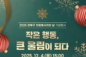 (포탈뉴스통신) 서울 강북구는 오는 12월 4일 강북문화예술회관 강북소나무홀에서 ‘2025 자원봉사자의 날 기념 행사’를 개최한다. 이번 행사는 ‘작은 행동, 큰 울림이 되다’를 슬로건으로, 12월 5일 자원봉사자의 날을 맞아 한 해 동안 지역사회를 위해 헌신한 자원봉사자들을 격려하고 나눔 문화를 확산하기 위해 마련됐다. 올해는 총 59명의 자원봉사자에게 시상이 이뤄진다. 수상자는 ▲자원봉사 유공자 24명(표창장) ▲3000시간 이상 봉사를 실천한 봉사자 7명(인증메달) ▲봉사 시간대별 인증서 수여 대상자 5명 등 한 해 동안 강북구를 위해 헌신한 주민들이다. 또한 올해 6월 발대식을 가진 가족봉사단 중 총 4회 프로그램에서 3회 이상 참여한 23가족에게도 수료증이 전달된다. 행사 프로그램도 다채롭게 진행된다. 자원봉사자 선서식과 자원봉사 활동 영상을 통한 우수 사례 공유가 진행되며, ‘노래하는 세션장구’ 상희킴의 진행으로 개그맨 엄영수와 댄스 듀오 ‘도시 아이들’의 축하공연이 이어진다. 공연장 출입구에는 기념촬영 포토월, 자원봉사자 활동사진전, 캐리커처 등 부대행사가 마련돼 참여자들의 즐거움을 더할 예정이다.