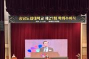 (포탈뉴스통신) 충남도립대학교 졸업생 344명이 배움의 시간을 마치고 지역과 사회를 향한 새로운 출발선에 섰다. 충남도립대학교는 11일 대학 해오름관 다목적실에서 ‘제27회 학위수여식’을 개최하고 전문학사와 학사 학위를 수여했다. 이날 행사에는 김태흠 충남도지사를 비롯해 정광섭 충남도의회 부의장과 도의원, 청양군수, 군의회 의장 등 주요 기관장이 참석했으며, 졸업생과 학부모, 교직원 등 450여 명이 함께해 졸업생들의 앞날을 축하했다. 무엇보다 올해 학위수여식은 도정을 책임지고 있는 김태흠 지사가 직접 참석해 졸업생 한 사람 한 사람의 출발을 응원했다는 점에서 의미를 더했다. 김태흠 지사는 격려사와 함께 전체 수석에게 표창을 수여하며 지역 인재에 대한 기대를 전했다. 김태흠 지사는 “충남도는 청년이 지역을 떠나지 않아도 되는 환경을 만들기 위해 산업과 일자리를 키우고 주거와 정주 여건을 지속적으로 개선하고 있다”며 “청년들이 이곳에 뿌리내리고 살아가며 미래를 설계할 수 있도록 기반을 더욱 단단히 다져 나가겠다”고 밝혔다. 그러면서 졸업생들에게 ‘수처작주(隨處作主)’의 의미