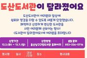 (포탈뉴스통신) 울산 남구 도산도서관은 부분 리모델링을 통해 한층 더 쾌적하고 편안한 독서환경을 조성하고 시민들이 책과 문화를 함께 즐길 수 있는 열린 공간으로 거듭나 이를 기념하는 ‘도산도서관이 달라졌어요’ 행사를 9일부터 14일까지 운영한다고 밝혔다. 이번 행사는 휴식과 영감을 더할 수 있도록 개선된 도서관 공간을 시민들에게 소개하고, 독서를 매개로 한 참여형 프로그램을 통해 도서관의 새로운 가치를 나누기 위해 마련됐다. 달라진 공간에서 지역 주민이 함께 즐길 수 있는 프로그램으로 ▲어린이집과 연계해 사서가 유아들에게 직접 동화책을 읽어주는 ‘책 읽어 주세요!’ ▲음악과 함께 그림책을 아이 스스로 소리 내어 읽으며 자신감을 기르는 낭독회 ‘소리로 읽는 그림책 한 장’ ▲변화된 도서관 공간에서 폴라로이드 사진기로 즉석 사진을 찍어 주는 포토이벤트 ‘책 향기 피는 공간, 나의 한 컷’ 프로그램을 운영한다. 프로그램 접수는 2일 오전 10시부터 선착순으로 진행되며, ‘소리로 읽는 그림책 한 장’ 강좌는 남구 구립도서관 누리집 강좌신청(에서, ‘책 향기 피는 공간, 나의 한 컷’강좌는 방문 선착순으로 신청받는다.
